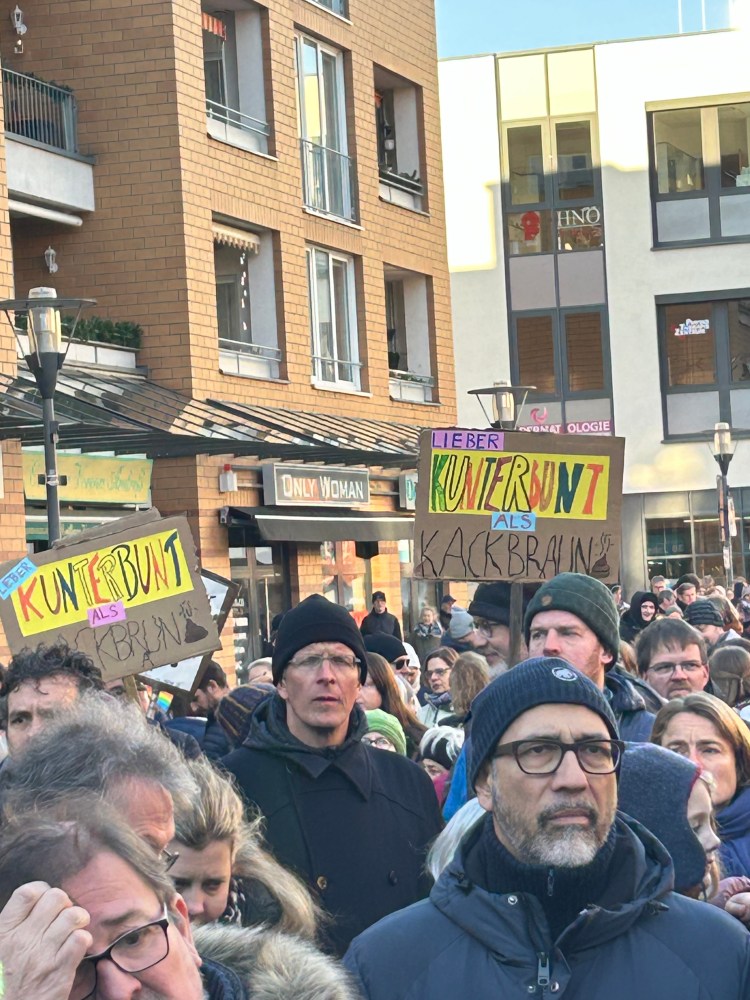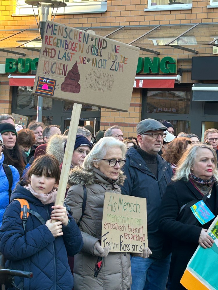 Ein riesiges Dankeschön an jeden Einzelnen, der am Sonntag auf dem Rathausmarkt in Kleinmachnow dabei war! Es war ein voller Erfolg mit geschätzt 1500 Teilnehmenden. Auf dem kompletten Rathausmarkt drängten sich die Leute mit Schildern, auf denen sie ihre Überzeugung bezüglich rechtem Gedankengut geschrieben und gemalt hatten, um diese zu präsentierten.