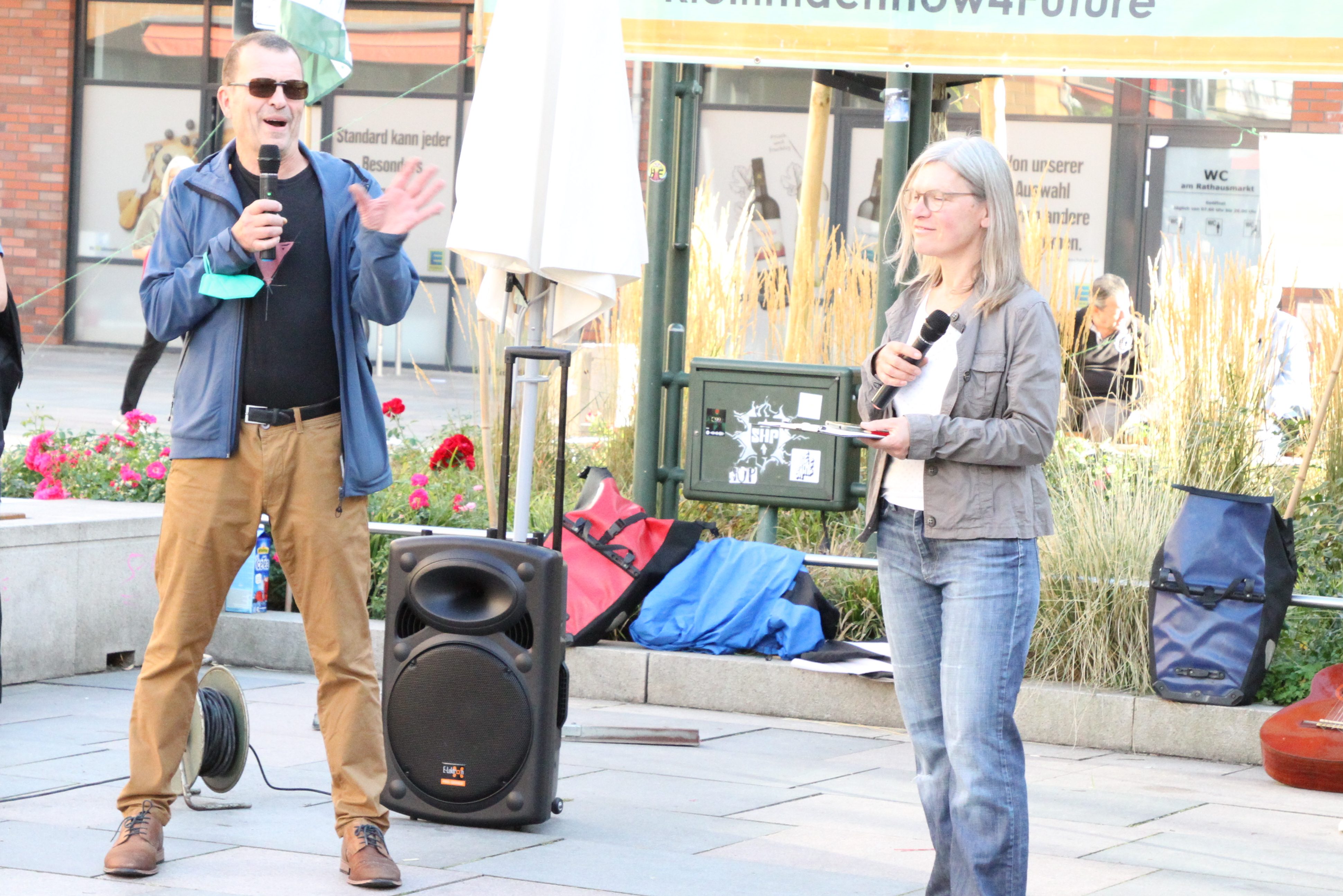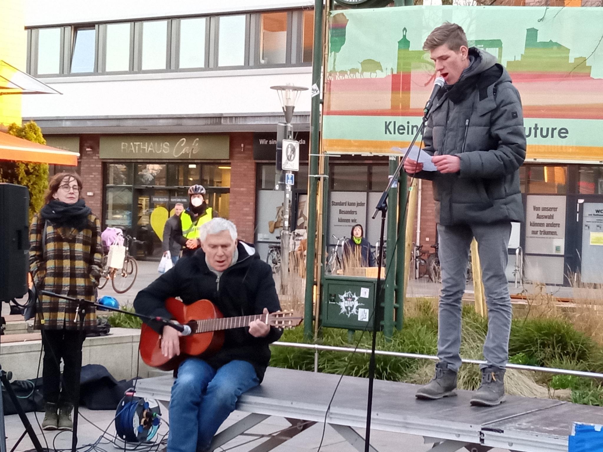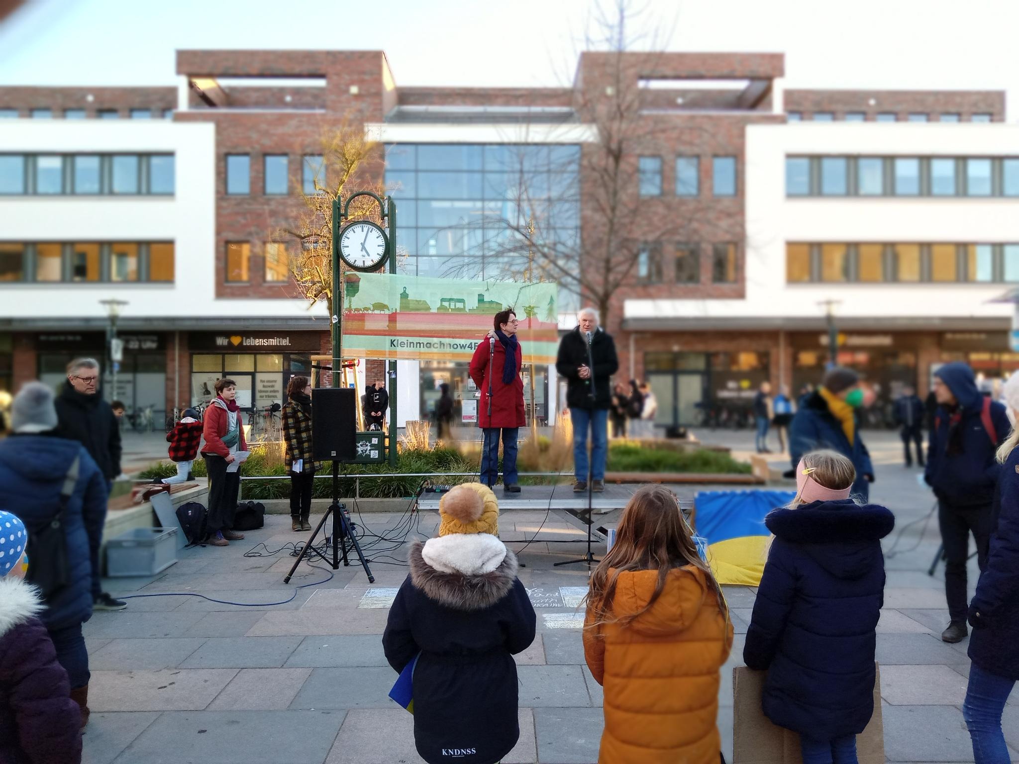 Nach langer Zeit waren wir wieder auf dem Rathausmarkt – Kleinmachnow4future hat in wenigen Tagen eine Demo auf die Beine gestellt mit dem Motto: Demokratie bewahren – Vielfalt verteidigen! Nachdem wir unsere Aktionen im letzten Jahr vom Rathausmarkt ins Rathaus verlegt hatten und in der Lokalen Agenda der Gemeinde mitgearbeitet haben, um so Schwung in die Klimaschutzmaßnahmen zu bringen, ging es uns jetzt darum, ein Zeichen zu setzen in der Diskussion um rechtsextreme Remigrationsideen. Große Städte hatten die Menschen in den letzten Tagen zusammen gebracht, jetzt wollten wir auch in der Region TKS aktiv werden. Innerhalb von ganz kurzer Zeit brachten wir Erstunterzeichner, die Organisation und die Redner zusammen. Aber dann waren wir doch von der Teilnahme der über 1000 Menschen überrascht: wie ermutigend, dass so viele aus unserer Region für Menschenrechte und gegen die Pläne der AFD aufstehen. Die Bürgermeister aus Kleinmachnow, Stahnsdorf und Teltow Grubert, Albers und Schmid hielten Reden, auch der Journalist Casdorff vom Tagesspiegel, der Vertreter des Türkischen Bundes Berlin-Brandenburg Remzy Uyguner und der Diakon der evangelischen Kirche Teltow Bindemann kamen mit ihren Beiträgen auf die Bühne – und noch viele andere aus der Zivilgesellschaft. Denn unsere Idee war es ja, keine Veranstaltung durchzuführen, bei der die politischen Parteien die wichtige Rolle spielen, sondern dass unterschiedliche gesellschaftliche Gruppen zu Wort kommen. Besonderen Schwung brachte die Band DukeBrass in die Kundgebung, die zwischen den Redebeiträgen die Stimmung auflockerte. Deswegen gelang es, dass trotz des ernsten Themas und der eindrucksvollen Reden alle ein gutes Gefühl hatten. Das war bestimmt nicht das letzte Mal mit einer Demo gegen Rechts bei uns und das darf es auch nicht geblieben sein – wir werden weiter für Demokratie, Vielfalt und Menschlichkeit eintreten und uns denjenigen in den Weg stellen, die genau das abschaffen wollen.