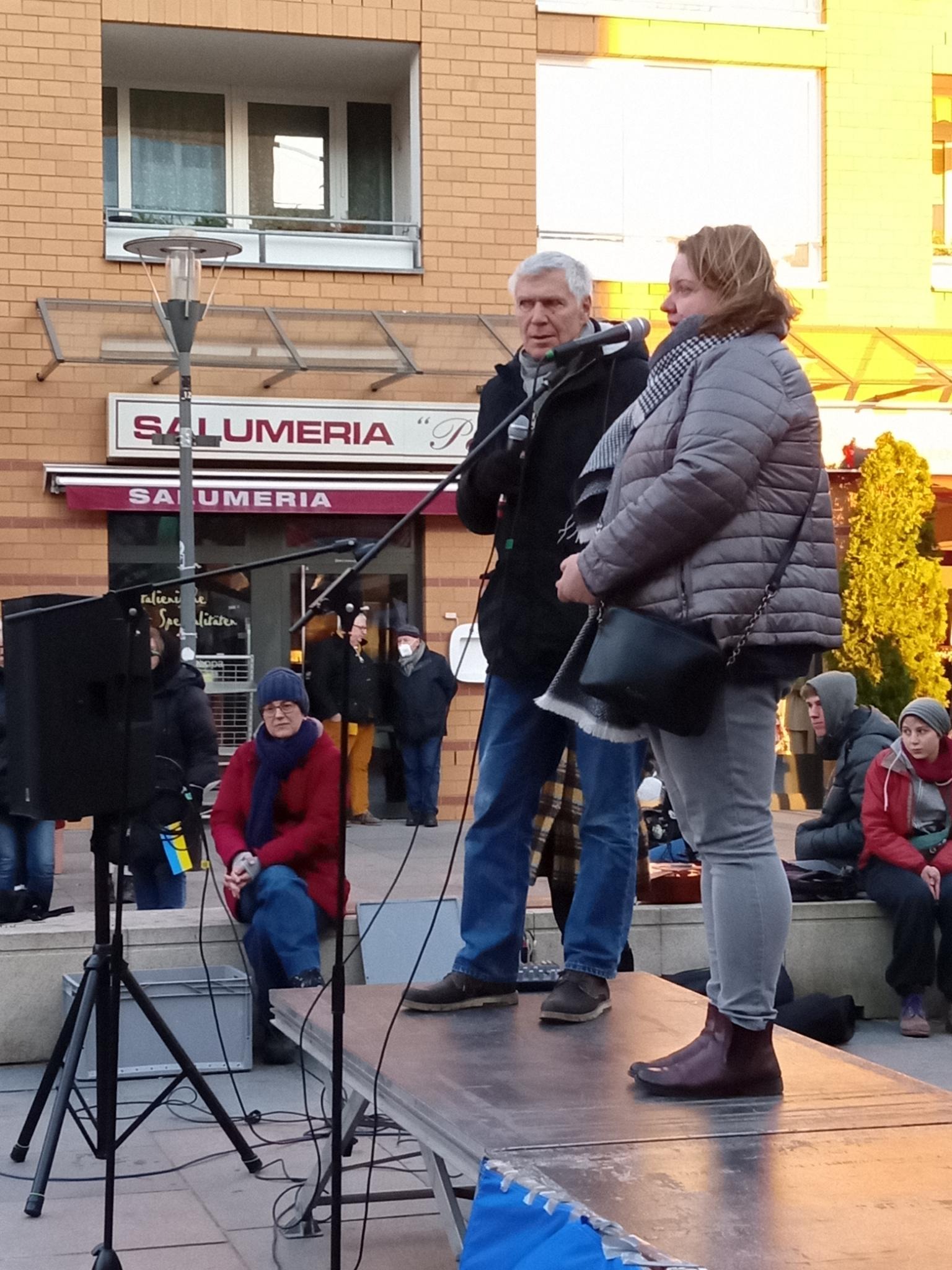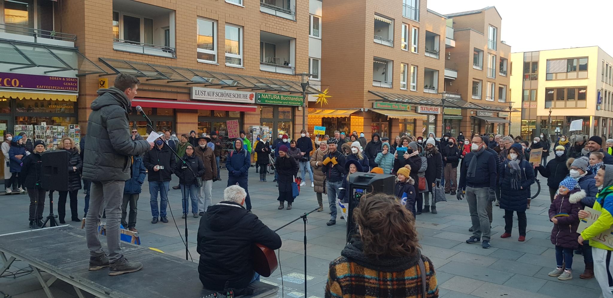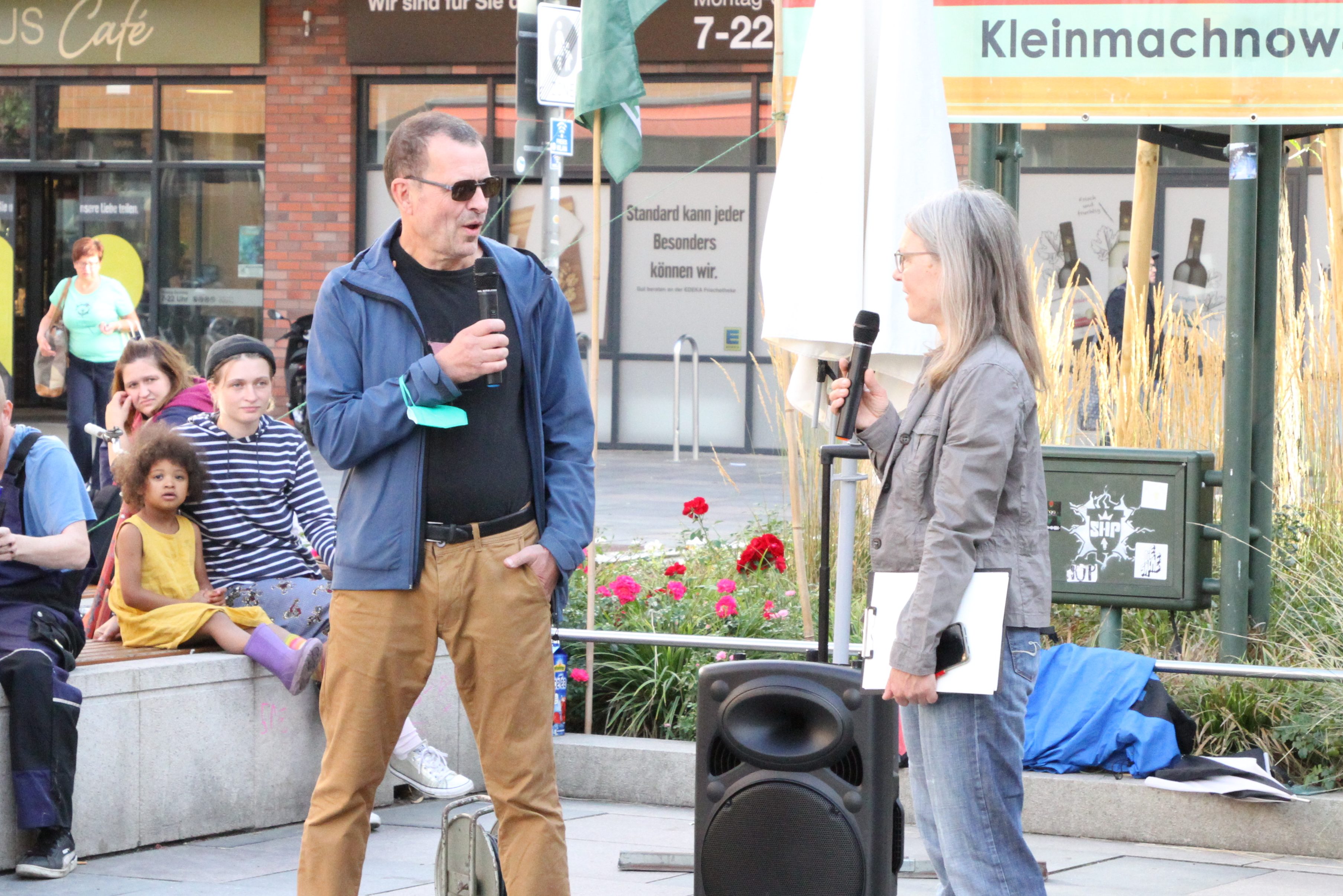 Nach langer Zeit waren wir wieder auf dem Rathausmarkt – Kleinmachnow4future hat in wenigen Tagen eine Demo auf die Beine gestellt mit dem Motto: Demokratie bewahren – Vielfalt verteidigen! Nachdem wir unsere Aktionen im letzten Jahr vom Rathausmarkt ins Rathaus verlegt hatten und in der Lokalen Agenda der Gemeinde mitgearbeitet haben, um so Schwung in die Klimaschutzmaßnahmen zu bringen, ging es uns jetzt darum, ein Zeichen zu setzen in der Diskussion um rechtsextreme Remigrationsideen. Große Städte hatten die Menschen in den letzten Tagen zusammen gebracht, jetzt wollten wir auch in der Region TKS aktiv werden. Innerhalb von ganz kurzer Zeit brachten wir Erstunterzeichner, die Organisation und die Redner zusammen. Aber dann waren wir doch von der Teilnahme der über 1000 Menschen überrascht: wie ermutigend, dass so viele aus unserer Region für Menschenrechte und gegen die Pläne der AFD aufstehen. Die Bürgermeister aus Kleinmachnow, Stahnsdorf und Teltow Grubert, Albers und Schmid hielten Reden, auch der Journalist Casdorff vom Tagesspiegel, der Vertreter des Türkischen Bundes Berlin-Brandenburg Remzy Uyguner und der Diakon der evangelischen Kirche Teltow Bindemann kamen mit ihren Beiträgen auf die Bühne – und noch viele andere aus der Zivilgesellschaft. Denn unsere Idee war es ja, keine Veranstaltung durchzuführen, bei der die politischen Parteien die wichtige Rolle spielen, sondern dass unterschiedliche gesellschaftliche Gruppen zu Wort kommen. Besonderen Schwung brachte die Band DukeBrass in die Kundgebung, die zwischen den Redebeiträgen die Stimmung auflockerte. Deswegen gelang es, dass trotz des ernsten Themas und der eindrucksvollen Reden alle ein gutes Gefühl hatten. Das war bestimmt nicht das letzte Mal mit einer Demo gegen Rechts bei uns und das darf es auch nicht geblieben sein – wir werden weiter für Demokratie, Vielfalt und Menschlichkeit eintreten und uns denjenigen in den Weg stellen, die genau das abschaffen wollen.