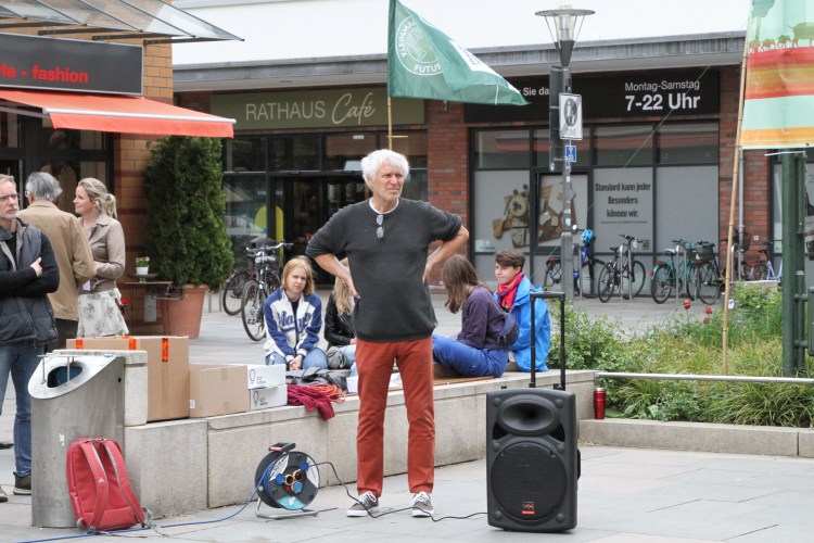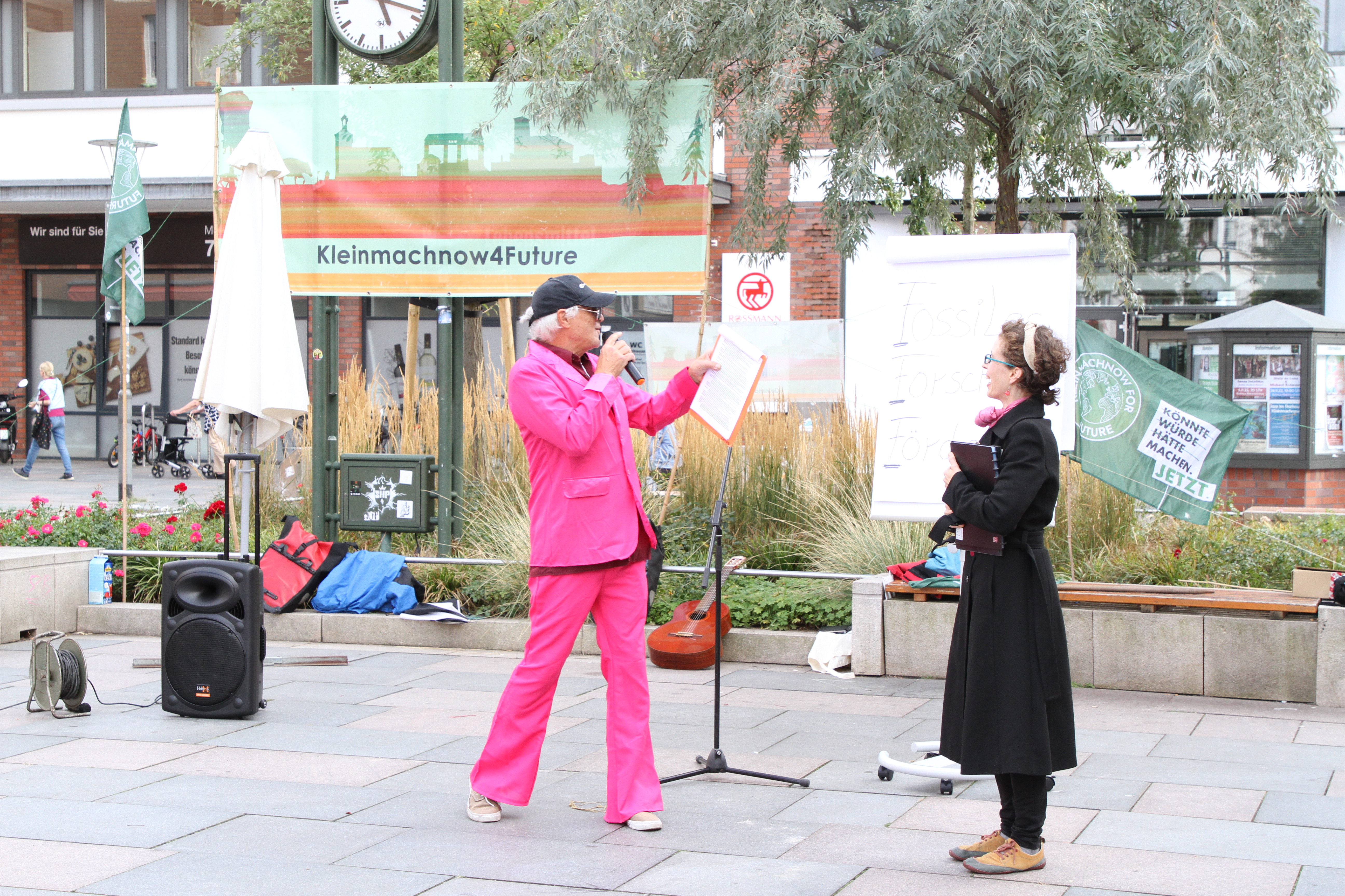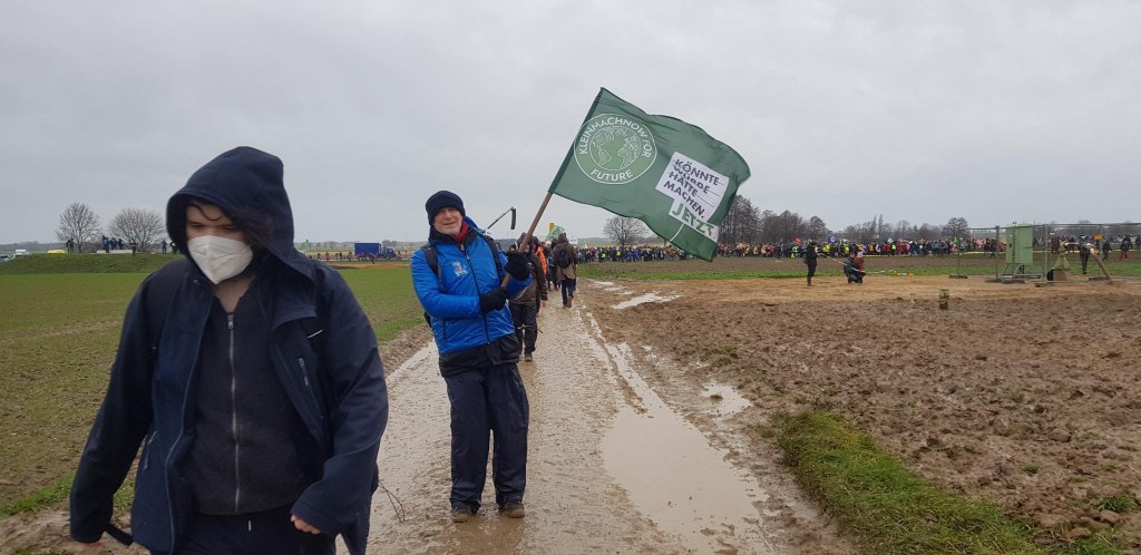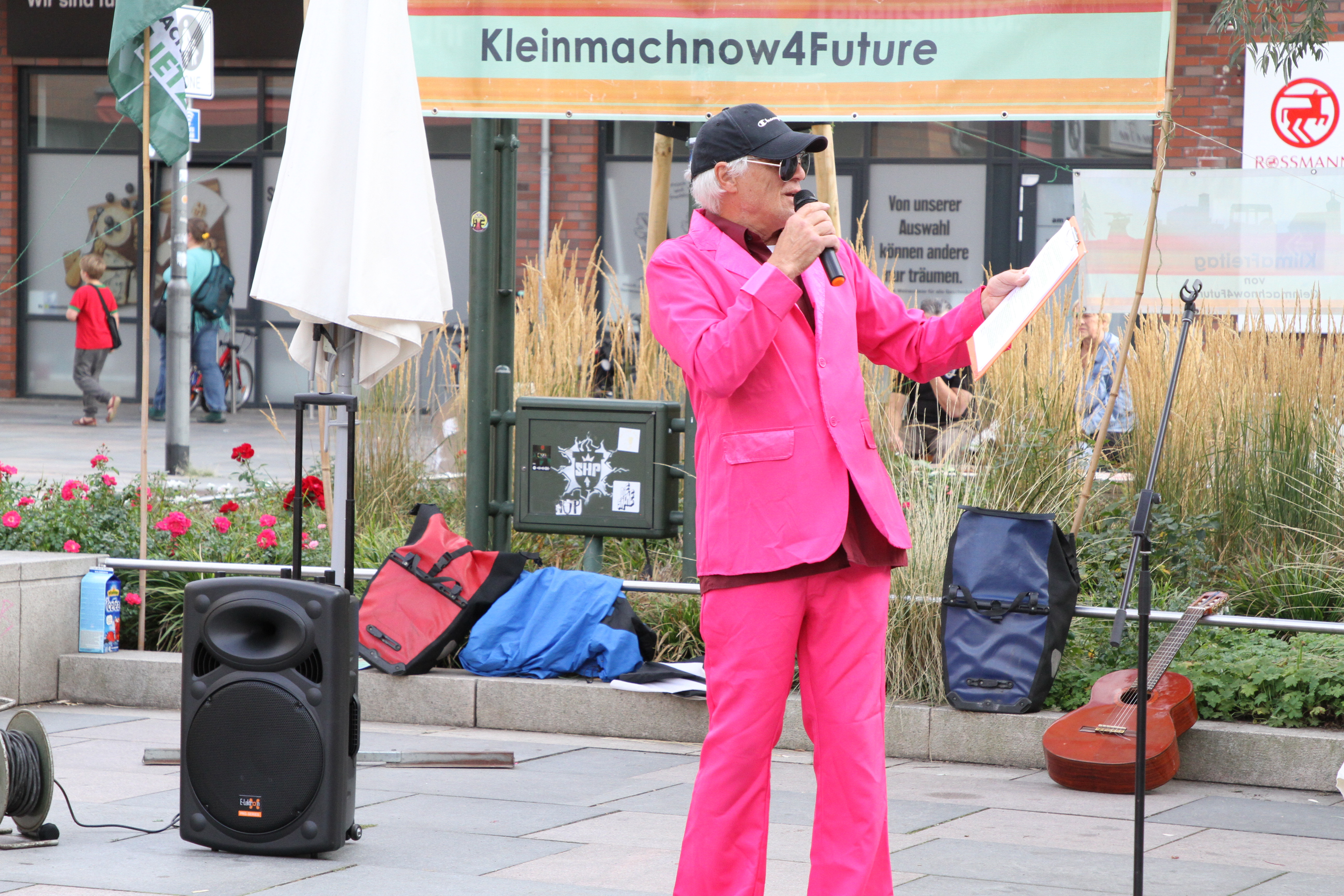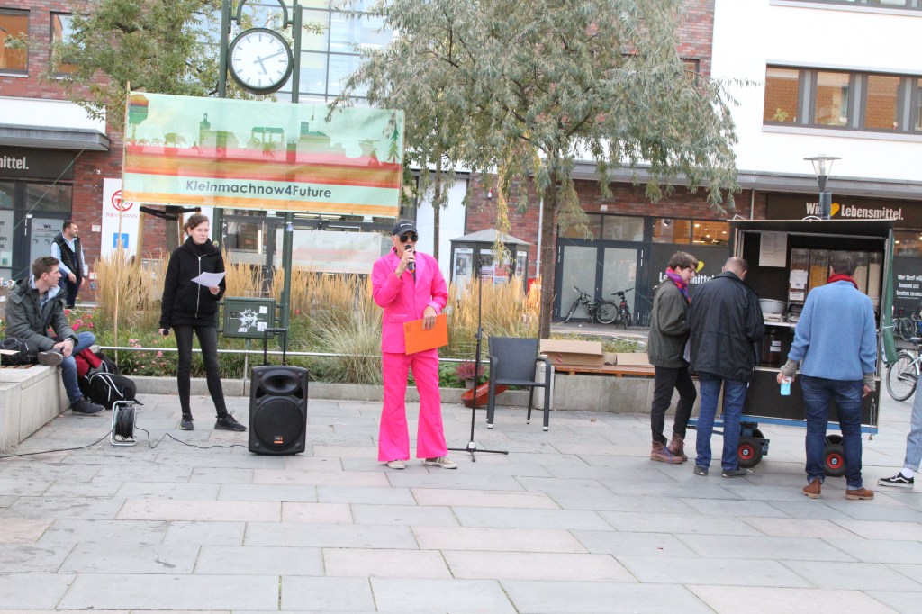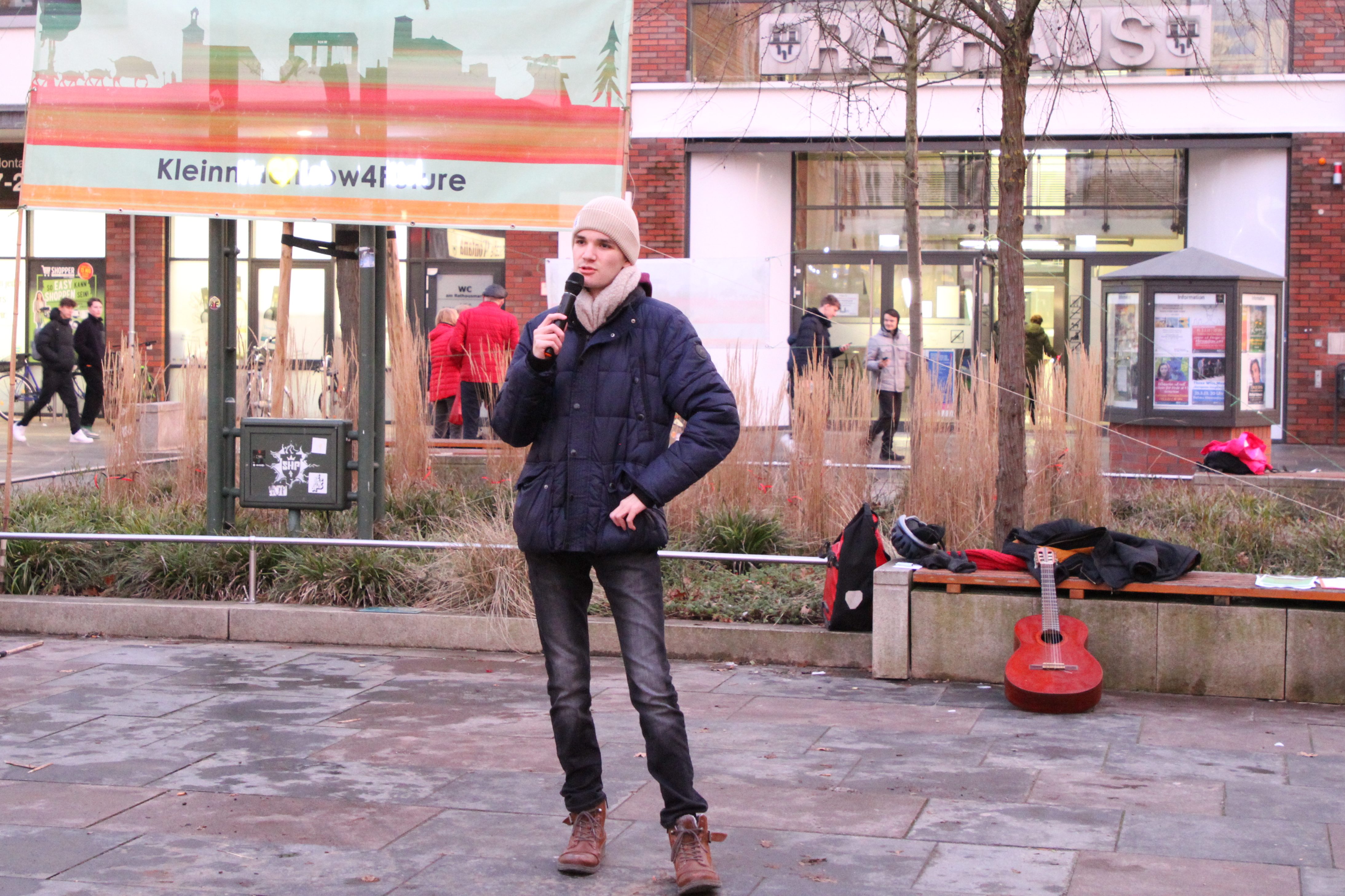 Man muss es leider sagen: Die Klimabewegung dümpelt im Moment! Die Teilnehmerzahlen gehen sehr nach unten und so auch an diesem Freitag. Die Gewerkschaft verdi war mit vielen Leuten anwesend – geschätzt 500 – und noch mal so viele von den Fridays. Und verdi dominierte mit Fahnen, Bühne, Ständen und Rednerbeiträgen die Demo. Schwere Zeiten für die Klimabewegung, weil andere Themen wie Ukraine-Krieg, Gaza-Krieg, Aufkommen des Rechtsextremismus so sehr im Vordergrund stehen. Dabei ist es ja nicht so, dass deswegen der Klimawandel einfach mal aufhört! Die Nachrichten sind immer wieder voll von neuen Entwicklungen in verschiedenen Bereichen, wo sich die abzeichnende Klimakatastrophe zeigt. 1,5 Grad – schon jetzt erreicht, auch wenn noch nicht im Jahresmittel. Aber es gibt keinen Anlass, sich jetzt zurückzuziehen und zu resignieren – wir von Kleimnachnow4future jedenfalls nicht.