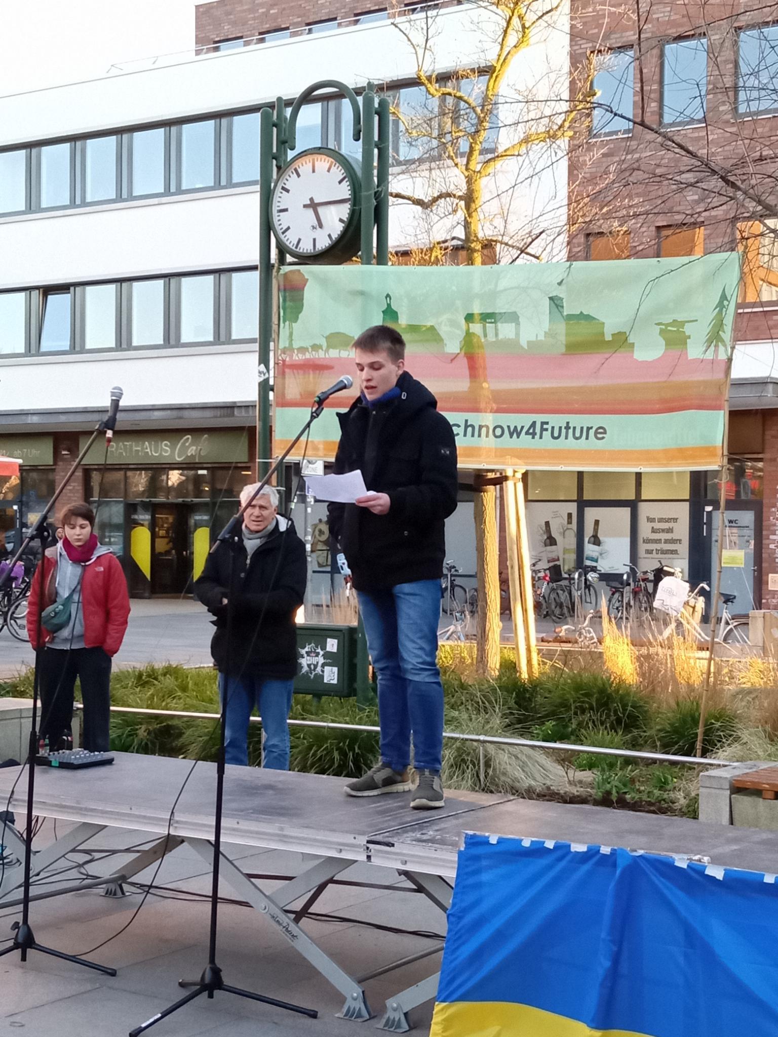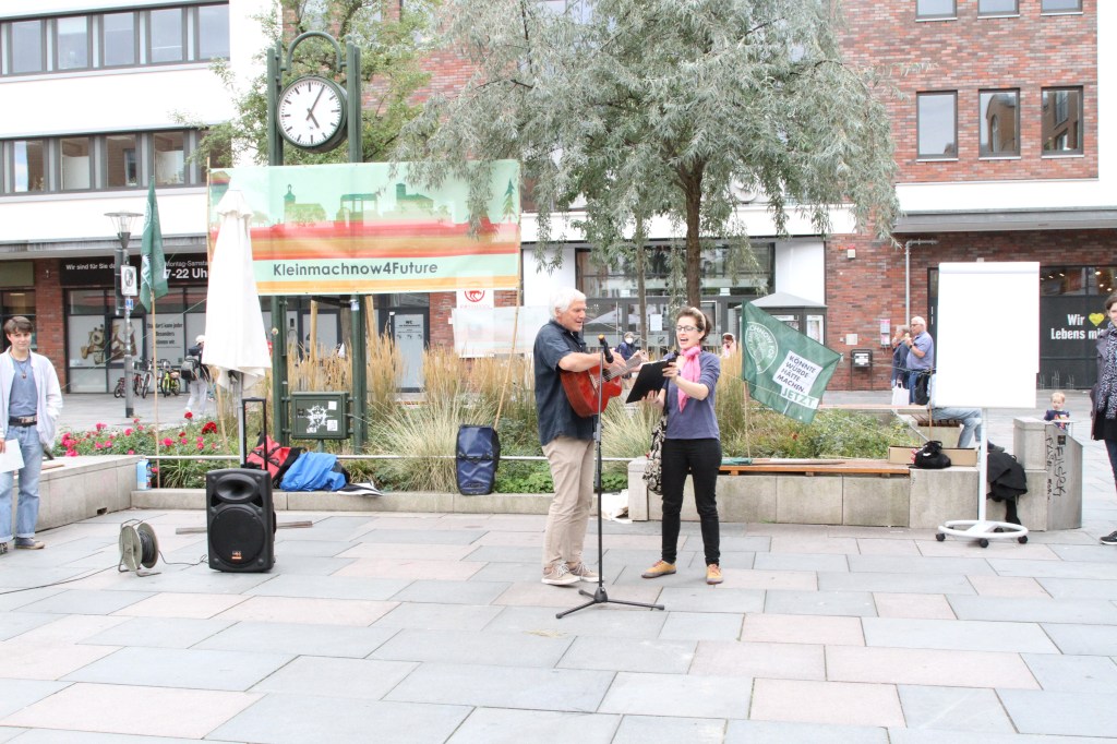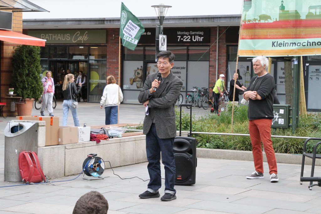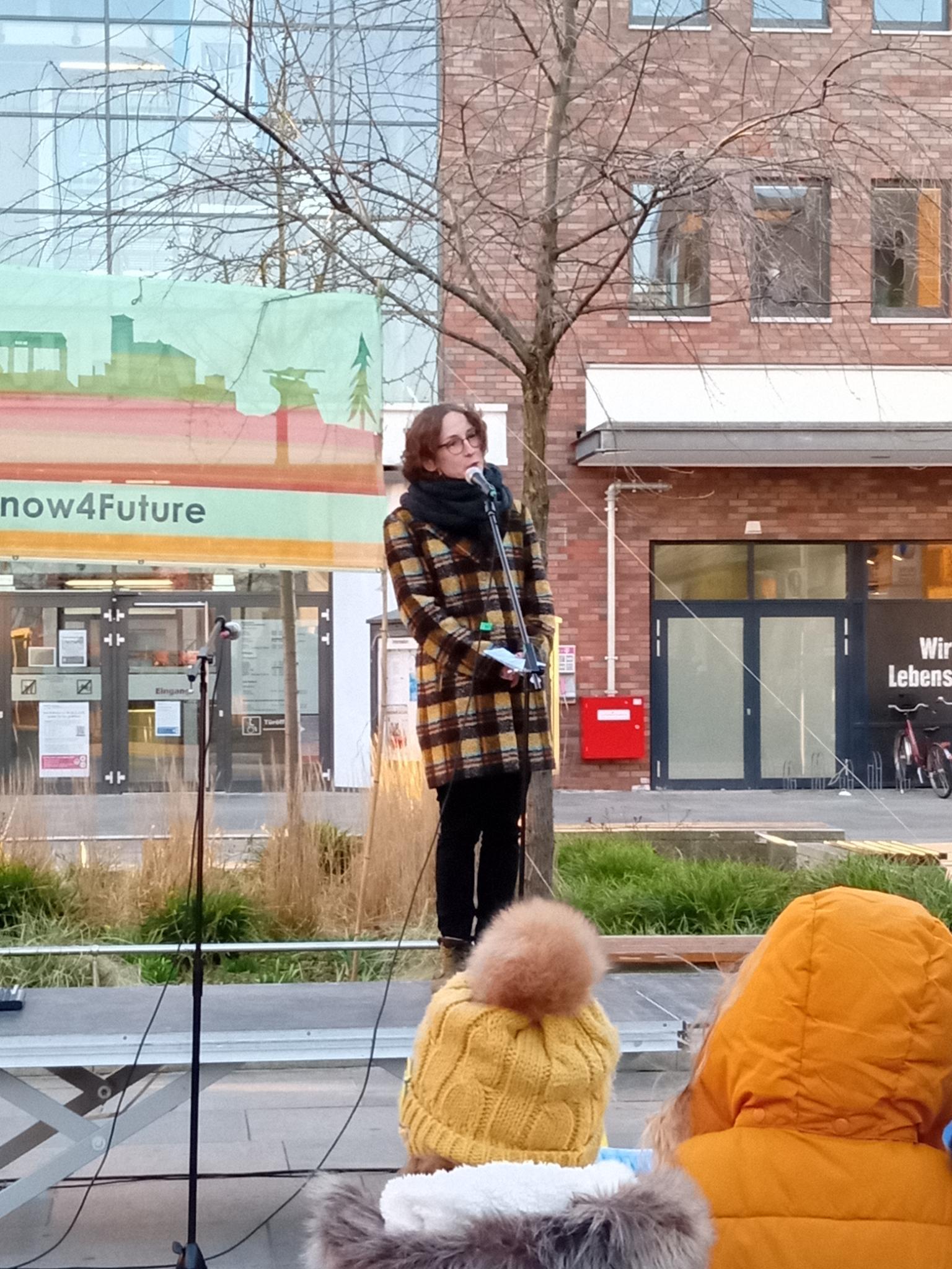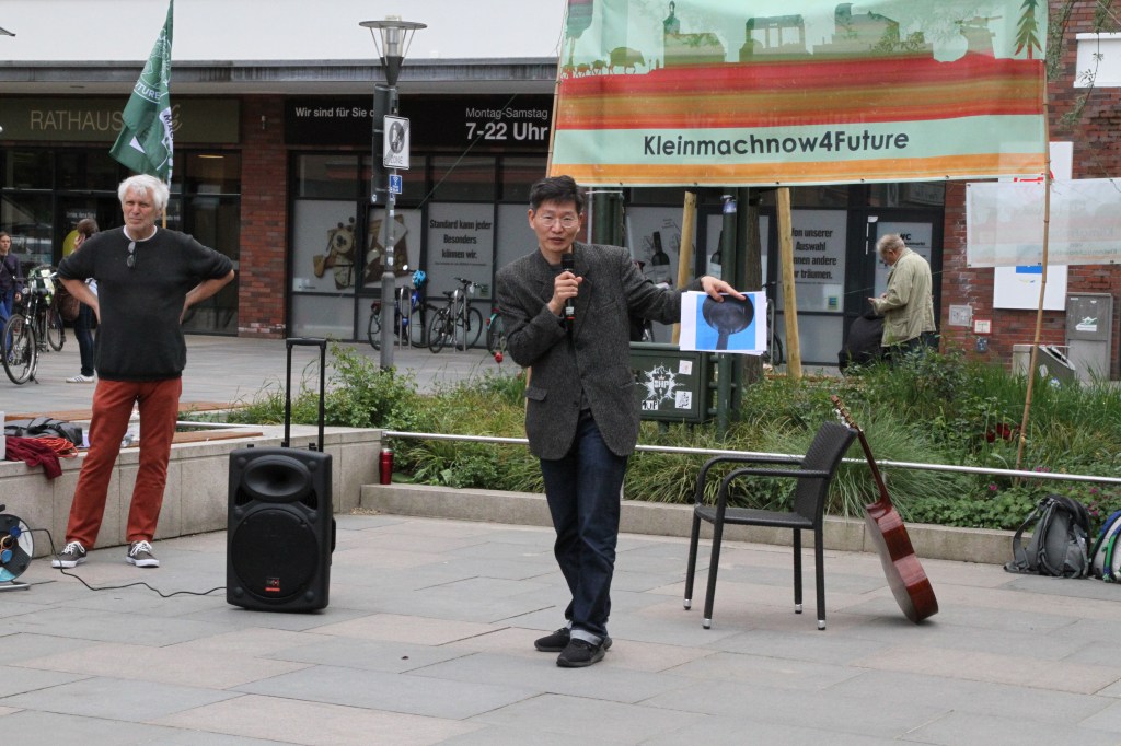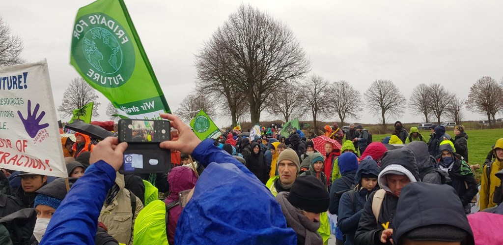 Man muss es leider sagen: Die Klimabewegung dümpelt im Moment! Die Teilnehmerzahlen gehen sehr nach unten und so auch an diesem Freitag. Die Gewerkschaft verdi war mit vielen Leuten anwesend – geschätzt 500 – und noch mal so viele von den Fridays. Und verdi dominierte mit Fahnen, Bühne, Ständen und Rednerbeiträgen die Demo. Schwere Zeiten für die Klimabewegung, weil andere Themen wie Ukraine-Krieg, Gaza-Krieg, Aufkommen des Rechtsextremismus so sehr im Vordergrund stehen. Dabei ist es ja nicht so, dass deswegen der Klimawandel einfach mal aufhört! Die Nachrichten sind immer wieder voll von neuen Entwicklungen in verschiedenen Bereichen, wo sich die abzeichnende Klimakatastrophe zeigt. 1,5 Grad – schon jetzt erreicht, auch wenn noch nicht im Jahresmittel. Aber es gibt keinen Anlass, sich jetzt zurückzuziehen und zu resignieren – wir von Kleimnachnow4future jedenfalls nicht.